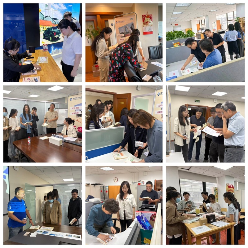 9月17日至19日,8个打卡点同步开放,在公司展厅、部分职能部门和业务部门分设“历史红印”和“业务新印”两个维度打卡点,并配备历史照片、文字材料,或由“打卡讲解员”现场介绍业务亮点。员工在打卡点有序排队,或认真聆听讲解,或热烈讨论问题,互相展示收集的印章,分享发现的公司发展小故事,在趣味问答和互动探索过程中,既集齐了专属定制印章,又系统了解了公司发展脉络与核心业务知识,更感受到了团队的活力与公司的文化底蕴。